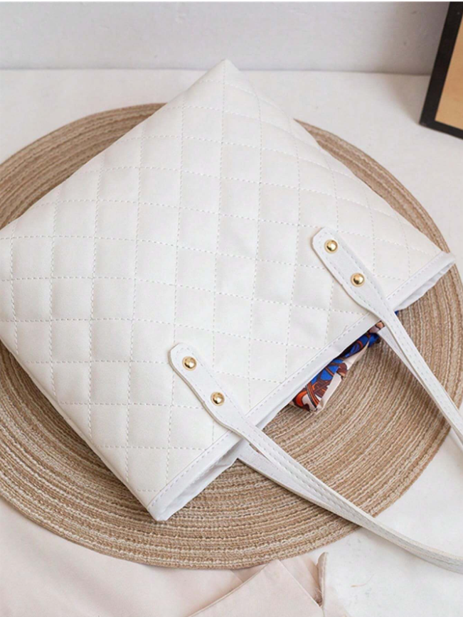Elevate your commute with a touch of artisanal charm. This Large Capacity Tote Bag is crafted from soft quilted PU material and adorned with delicate embroidery, adding a unique, textured detail. The attached decorative scarf provides a pop of color and a customizable flair, allowing you to tie it to the handles or wear it as a personal accent.
