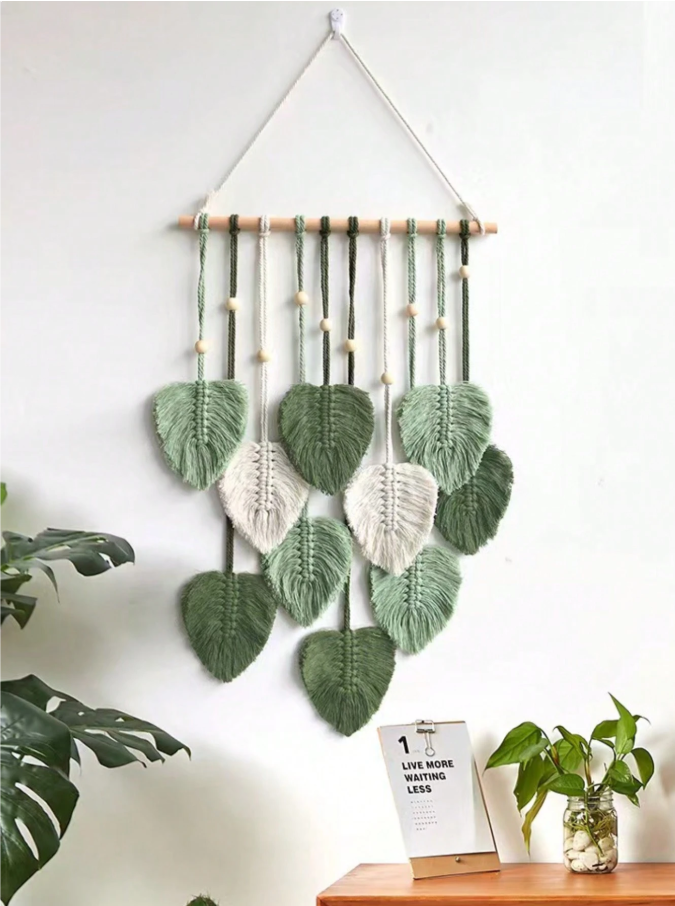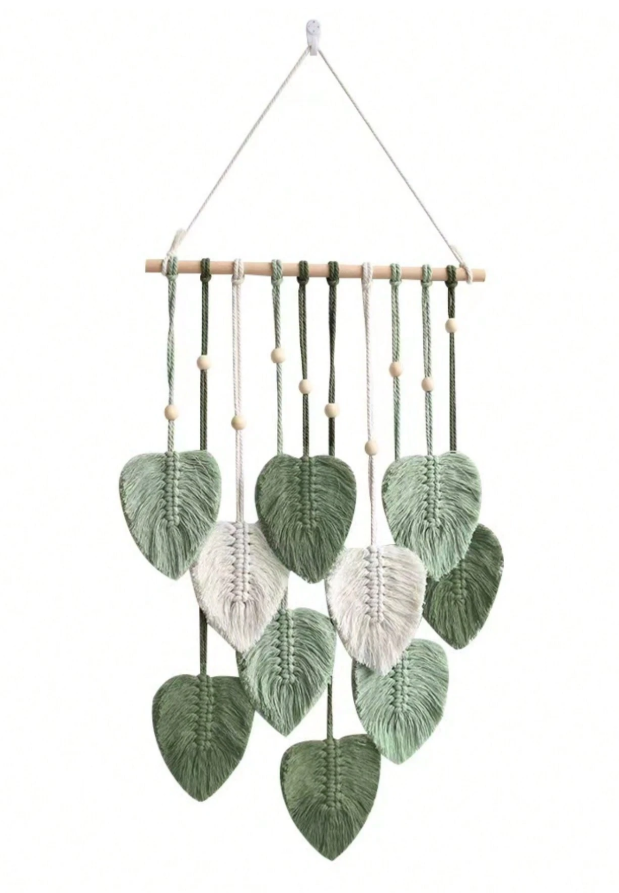 This 1pc Bohemian green leaf hanging décor adds a refreshing natural touch and relaxed artistic vibe to any space. Designed with beautifully detailed green leaves in a flowing arrangement, it brings warmth and texture to walls, windows, doors, bedrooms, living rooms, balconies, and event spaces. Lightweight and easy to hang, it is perfect for enhancing home décor, boho-style interiors, parties, weddings, festivals, and everyday decoration, creating a calm and inviting atmosphere with its nature-inspired elegance.