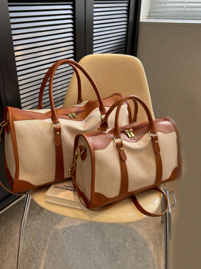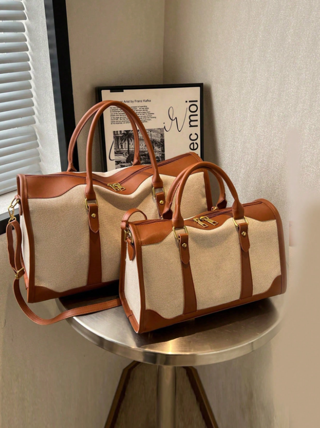Discover your new go-to travel companion with the Canvas Contrast Color Patchwork Fashion Duffle Bag. This unisex bag masterfully blends bold, artistic style with versatile functionality, featuring a unique patchwork design of contrasting colors and textures that stands out from the crowd.