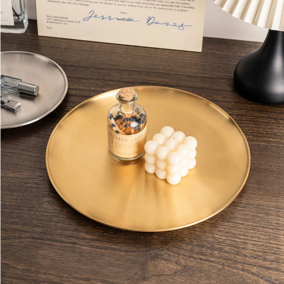 1pc Elegant Minimalist Nordic Style Decorative Tray, Premium High-End Gold Accent Tray, Durable Stainless Steel