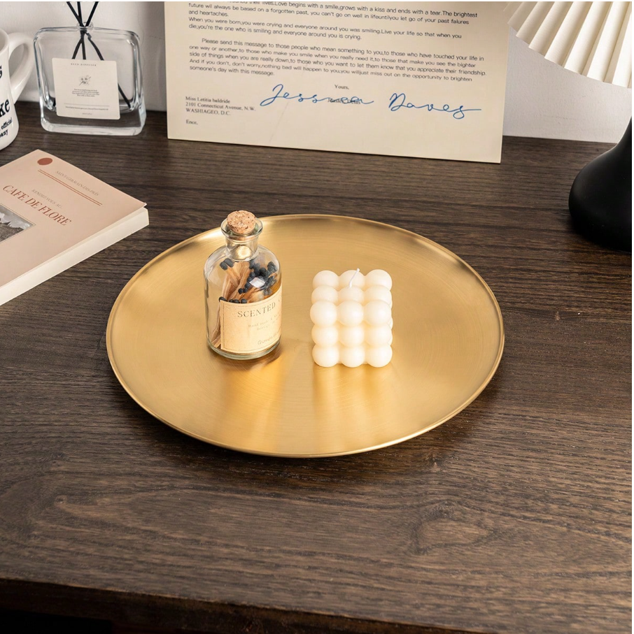 **1pc Elegant Minimalist Nordic Style Decorative Tray** features **premium high-end gold accents** and a sleek, durable stainless steel construction. Its clean lines and refined finish make it a versatile statement piece for holding jewelry, keys, candles, or small decor items. The lightweight yet sturdy design resists tarnish and wear, ensuring lasting elegance. Perfect for adding a touch of modern luxury to vanities, entryways, or coffee tables.