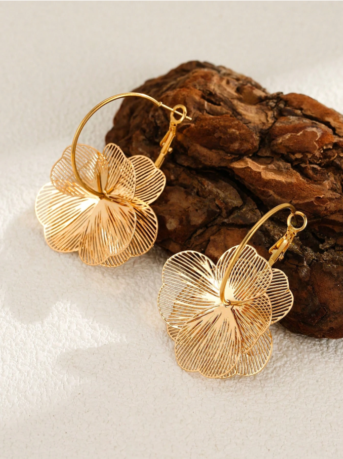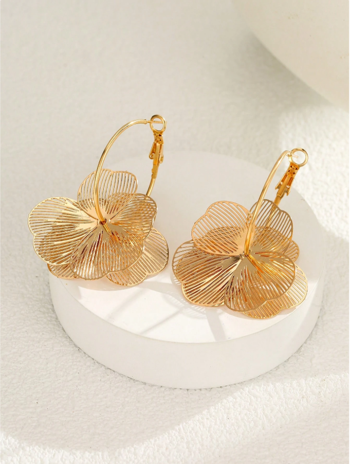 Embrace timeless beauty with these alluring gold-plated hollow flower wreath earrings, featuring an intricate floral design that catches the light from every angle. The elegant golden finish adds a touch of sophistication, making them perfect for bridesmaids on wedding days or for elevating your everyday style. Lightweight and comfortable, these studs offer all-day wearability without sacrificing their statement-making appeal.