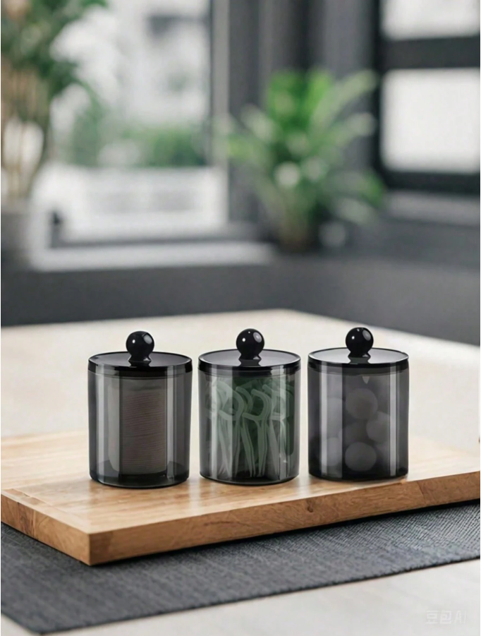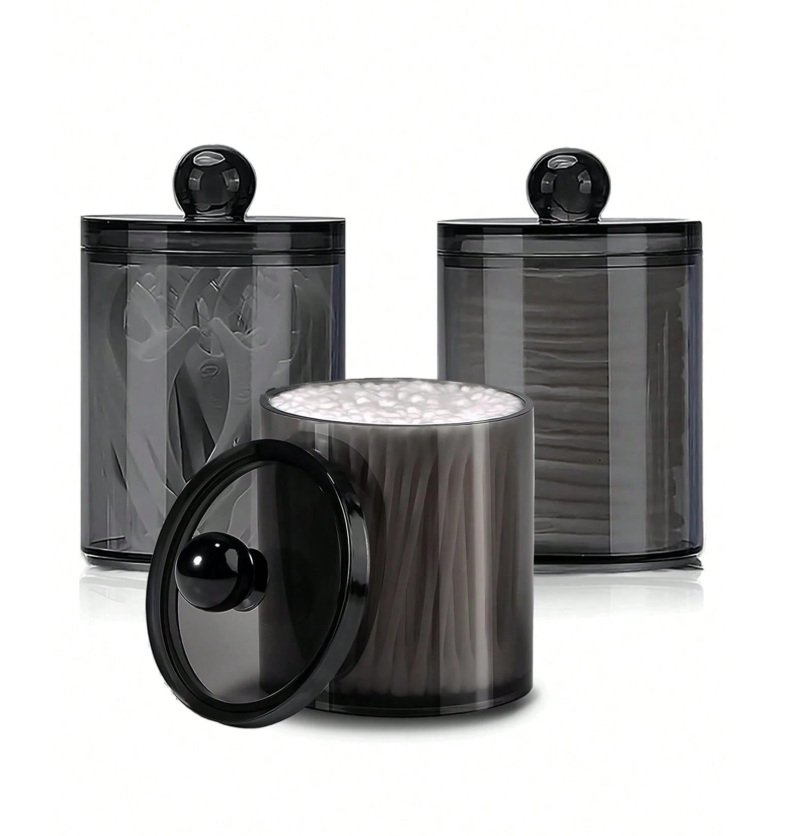 **4 Packs Black Swab and Dental Floss Holders** provide a **sleek, space-saving storage solution** for bathroom countertops and vanities. Each 10 oz small-capacity container keeps cotton swabs and dental floss neatly organized and easily accessible. The minimalist black design adds a modern touch while reducing daily clutter. Ideal for maintaining a clean, tidy, and effortlessly stylish self-care space.