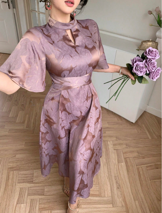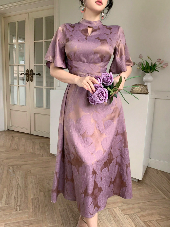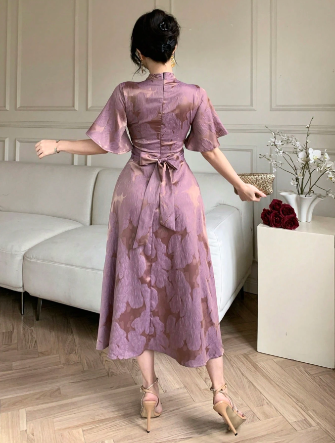 The DAZY Elegant V-Neck Printed Long Dress embodies goddess-style sophistication with its flattering V-neckline and flowing silhouette designed to create a slimming, elongated look. The vibrant printed pattern adds artistic flair while the floor-grazing length and chic draping evoke timeless elegance, making it perfect for weddings, formal events, or any occasion where making a stunning impression is desired.
