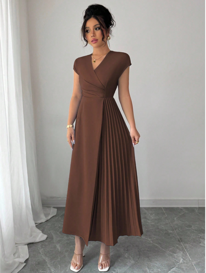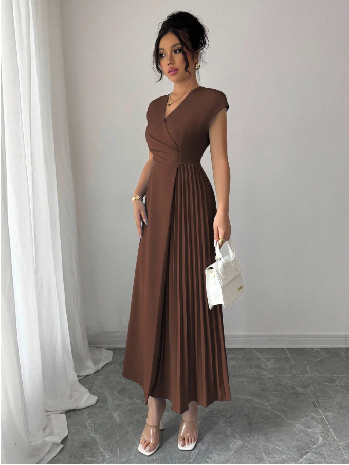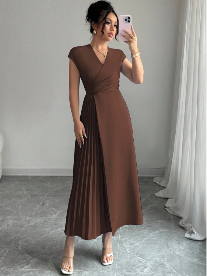 The Elenzga women’s elegant minimalist maxi dress is designed to deliver effortless sophistication with modern comfort. Featuring a flattering V-neckline, softly pleated waist, and relaxed dropped-shoulder sleeves, this solid color dress creates a graceful, flowing silhouette that complements every figure. Its refined yet comfortable design makes it perfect for a wide range of occasions — from commuting, office, and business wear to casual outings, vacations, and afternoon tea. Timeless in style and versatile in function, this dress offers polished elegance for every moment of your day.