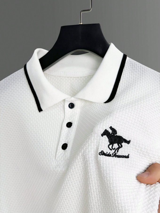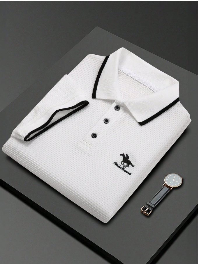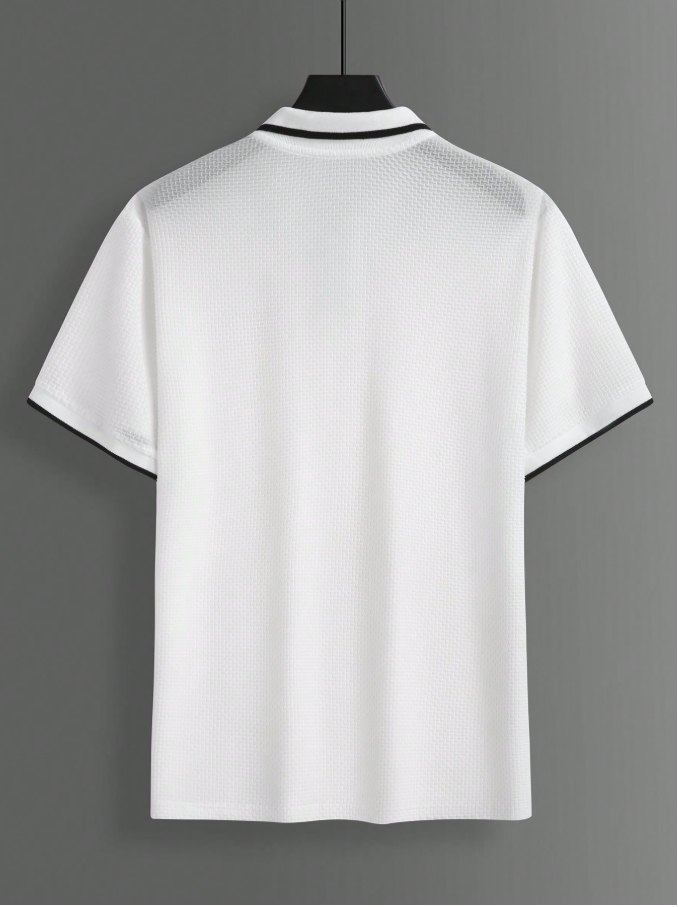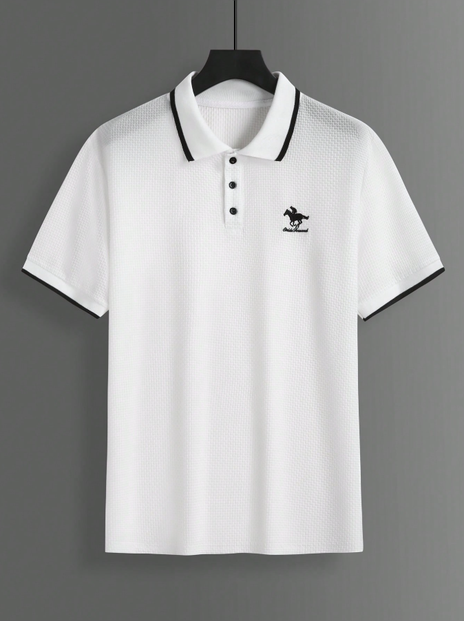 Manfinity Mode Men’s Textured Embroidered Button Ribbed Short Sleeve Casual Polo Shirt College Style Pattern Polo Men White Polo Men Polo Shirts For Men Collar Mens Golf Shirt Rodeo Shirt,Daily Leisure, Weekend Trips