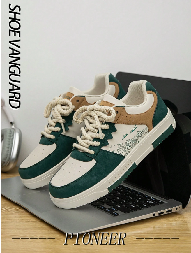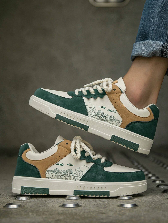 Unleash vibrant, youthful energy with the Men’s Colorblock Print Low-Top Skate Shoes. Designed with a bold, random colorblock pattern and playful graphics, these sneakers capture an eclectic, romantic school style that stands out with creative flair and retro-inspired charm.
