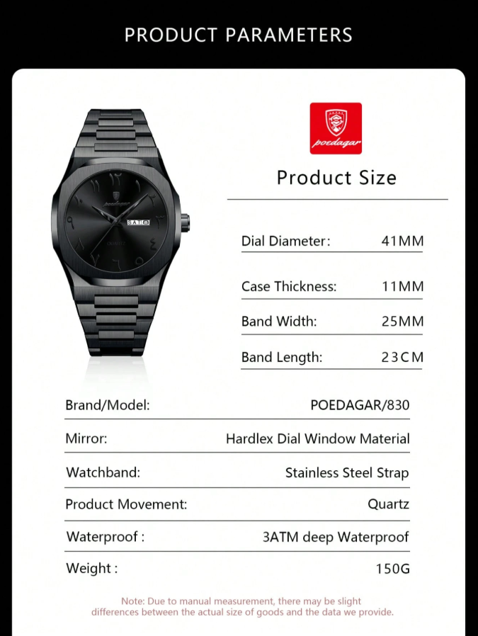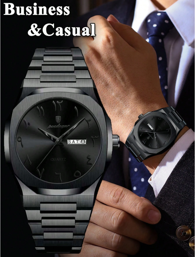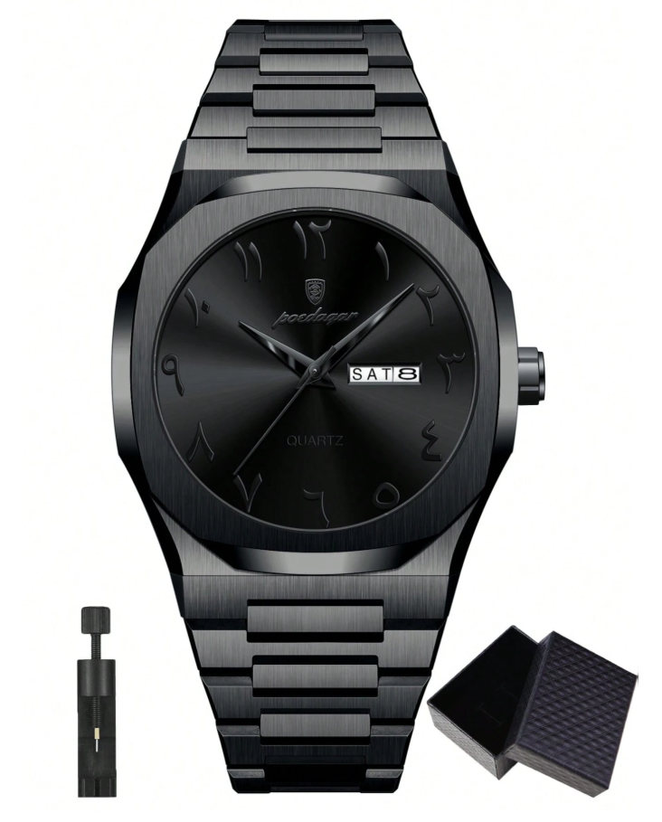 Elevate your professional style with this POEDAGAR stainless steel quartz watch, featuring convenient date and day displays for the modern businessman. The sleek, polished design transitions seamlessly from boardroom meetings to casual evenings, while 30M water resistance offers reliable protection against splashes and rain. Precision quartz movement ensures accurate timekeeping, and the durable construction promises lasting quality for daily wear.