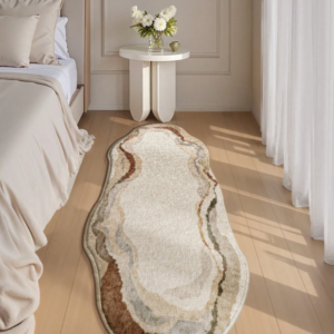DAJIANG 1pc Geometric Line Pattern Runner Rug, Soft Plush Area Rug For Living Room, Comfortable Warm Beige Color, Non-Slip TPR Bottom, Suitable For Bedroom, Bathroom, Kitchen, Entryway, Hallway, Bedside, Living Room