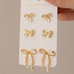 3 Pairs Gold Bow Stud Earrings Set, Bow Earrings Set, Fashion Jewelry Bow Accessories For Women