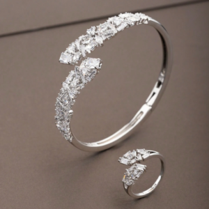 €14.99This fashionable jewelry set includes one geometric inlaid bracelet and one matching ring, both featuring dazzling cubic zirconia stones set in sleek, modern designs. The geometric pattern adds a contemporary edge to the brilliant sparkle, making it a standout accessory for brides, wedding guests, or banquet events. The adjustable bracelet and ring ensure a comfortable...