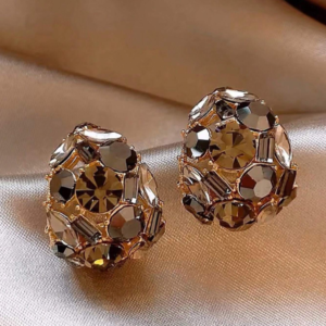 1pair Unique Retro-Inspired Elegant Glass Inlay Hoop Earrings For Women, Luxury European Style