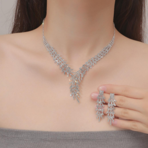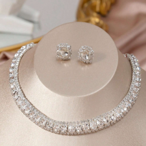 1set Crystal Necklace & Earrings Jewelry Set
