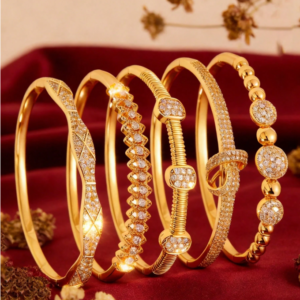 €7.995/1pc Luxurious Copper-Plated Gold Bracelet features a stunning selection of elegant designs inlaid with sparkling cubic zirconia, delivering a refined and sophisticated look for modern women. Crafted with high-quality copper plating and finished in radiant gold, this bracelet set combines durability with timeless luxury. The shimmering zirconia stones catch the light beautifully, making each piece...