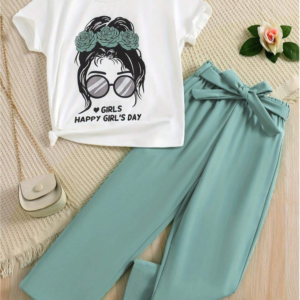 €19.99This 2PCS/Set Girls Summer Thin Outfit includes a cute eyeglasses print short sleeve round neck top paired with solid color straight leg pants for a stylish and casual look. Made with breathable lightweight fabric, it keeps tween girls comfortable and cool during warm weather. Perfect for daily wear, school, outings, travel, and summer activities, this...