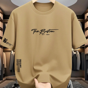 Manfinity Joysei Men’s Modern Casual Khaki Brooklyn NYC Letter Pattern Short Sleeve Knitted Fabric