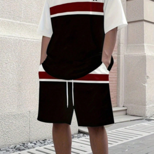 Manfinity Homme Men’s Contrast Stripe Short Sleeve Button Front Casual Shirt, Summer Men Two Piece Set Summer