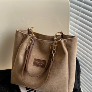 Elevate your daily carry with this luxurious solid-color suede tote bag, designed for the modern woman on the go. Its soft, textured exterior opens to a spacious interior with ample room for all your commuting, travel, or shopping essentials. The secure zipper closure ensures your belongings stay safe, while the sturdy shoulder straps offer comfortable...