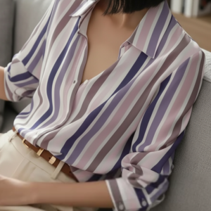 Women’s Striped Long-Sleeve Polyester Shirt With Button Collar