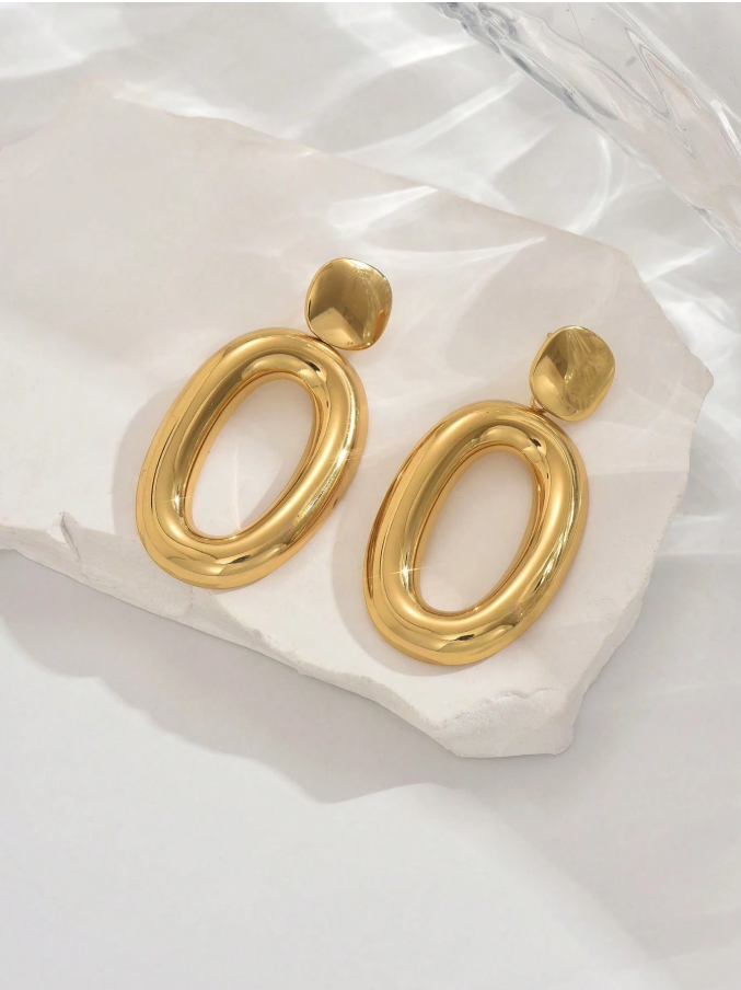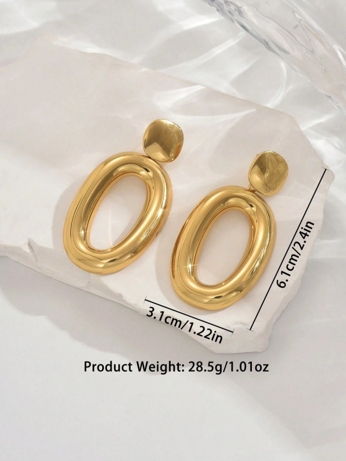 These exquisite 1 Pair Minimalist Oval Shape Earrings feature flawlessly smooth lines and a natural golden texture that creates a warm, luxurious shine, embodying understated high-end design. The elegant oval silhouette offers timeless sophistication while the gleaming finish catches light beautifully, making them versatile enough to elevate both casual daily outfits and formal evening ensembles.