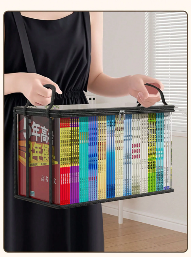 Portable and stackable, this book case bag helps maintain order and preserve your items from clutter and damage. A must-have book organizer for readers, students, teachers, and anyone who values a tidy, accessible collection.