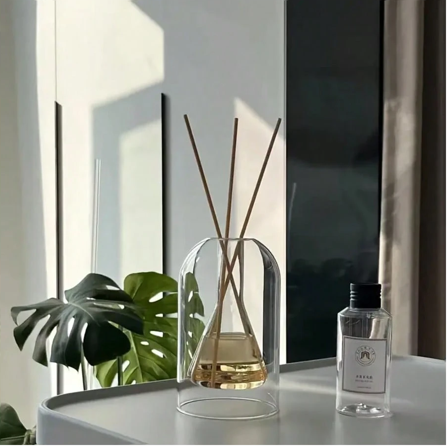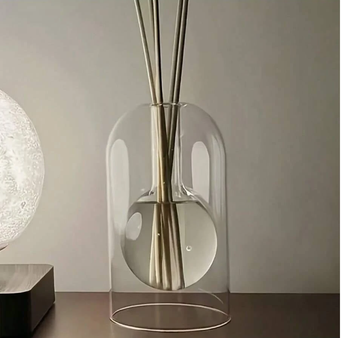 This 1 pc simple luxury style glass aromatherapy bottle is an elegant and versatile décor piece designed to enhance your space with both beauty and fragrance. Crafted from high-quality clear glass, it functions perfectly as an aromatherapy diffuser bottle, home perfume container, house freshener, and decorative vase. Its refined minimalist design complements modern and classic interiors, making it ideal for room décor, home styling, tabletop display, and floral arrangements. Whether filled with essential oils, fragrance reeds, or fresh flowers, this glass vase brings a calm, luxurious atmosphere to any room.