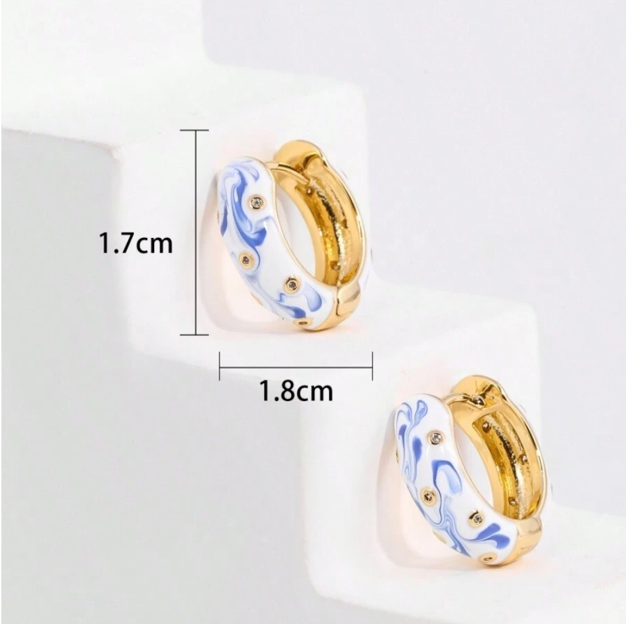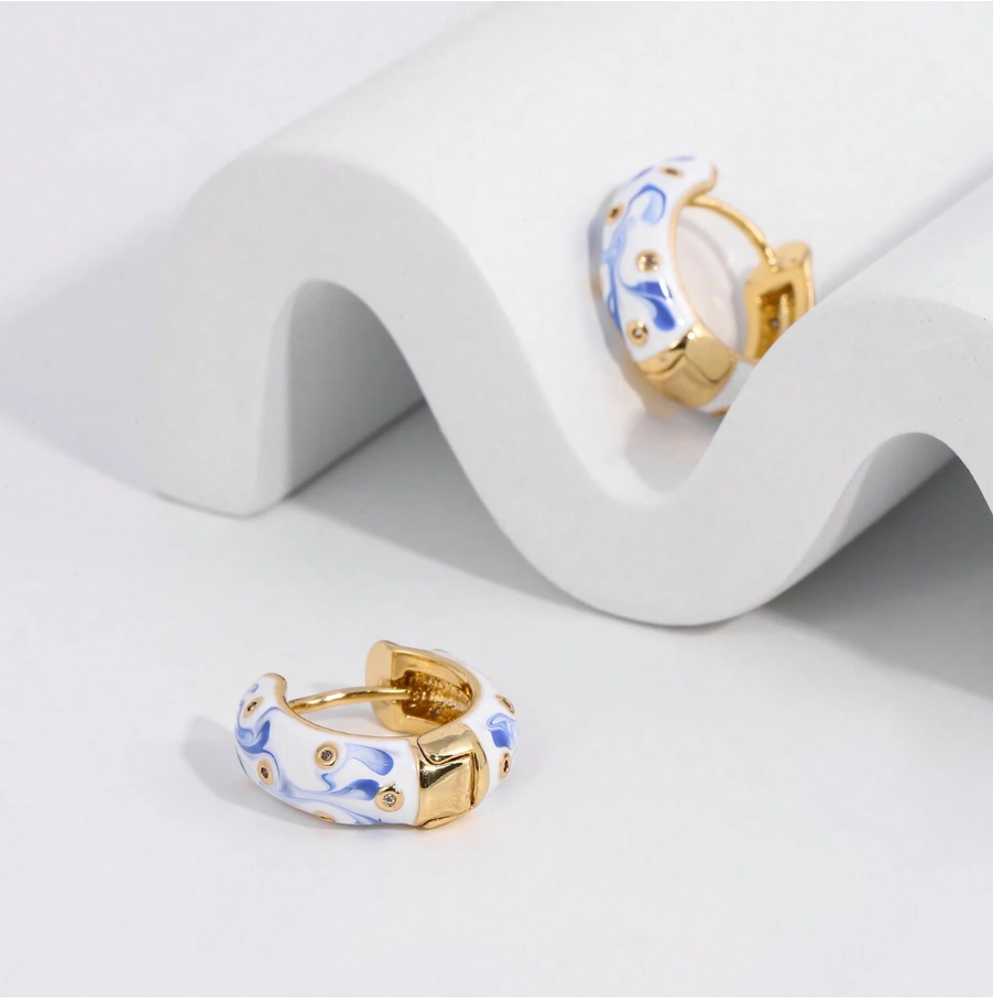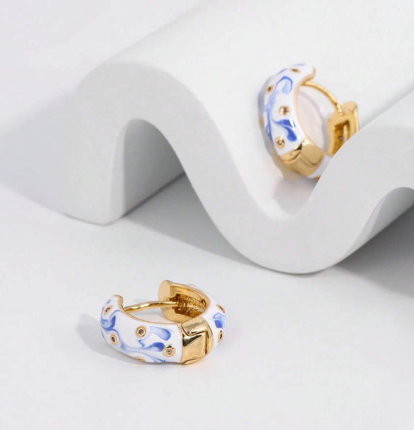 Embrace timeless artistry with this pair of Chinese Style Blue-and-White Porcelain Enamel Cloisonné Hoop Earrings, beautifully finished with 18k gold-plated accents. Each piece showcases intricate craftsmanship, blending traditional ceramic patterns with a luxurious metallic sheen for a striking cultural statement. Lightweight and elegant, these earrings add a touch of refined heritage to both modern and classic wardrobes.