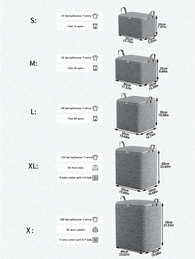 This Back-To-School Season Large Capacity Cationic Storage Bag is a versatile and durable solution for organizing your home, office, and everyday essentials. Crafted from high-quality cationic fabric, it offers excellent strength and long-lasting performance while maintaining a sleek modern look. With its spacious interior, this bag is perfect for storing clothes, toys, books, office supplies, miscellaneous items, and seasonal belongings. The portable design makes it easy to move and reposition, and it requires no internal support, allowing it to fold flat when not in use. Ideal for use under the bed, inside cabinets, on top of wardrobes, or in storage rooms, this multi-purpose storage bag helps maximize space while keeping your environment clean, organized, and clutter-free.