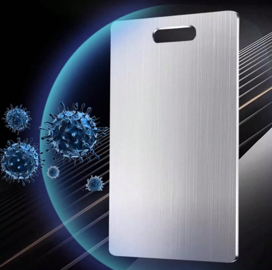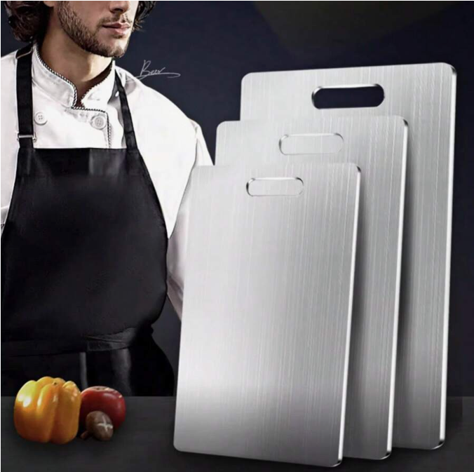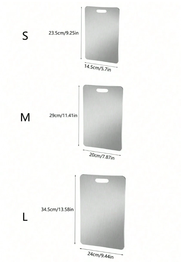 1pc Double-Sided Standable Cutting Board is a premium kitchen essential designed for both home and commercial use. Made with a durable stainless steel cutting surface, this board is mildew-proof, antibacterial, and highly resistant to stains and odors, ensuring a safe and hygienic food preparation experience. Its double-sided design allows separate use for different ingredients, while the standable feature makes drying and storage easy and space-saving. Finished with a stylish fruit pattern, this cutting board combines functionality with modern aesthetics, making it perfect for chopping vegetables, fruits, meats, and more in any professional or home kitchen.