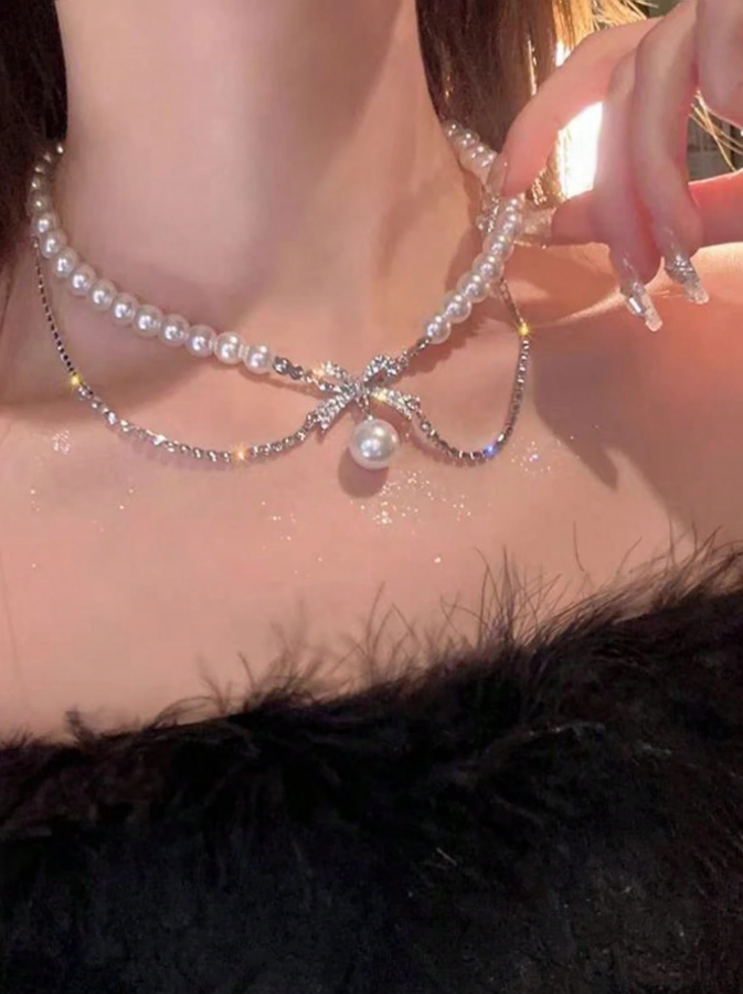 This elegant faux pearl beaded necklace features a charming bowknot design, adding a touch of feminine grace to any party or special occasion outfit. The lustrous faux pearls create a classic and sophisticated look, while the bowknot detail brings a playful yet romantic element. Perfect as a birthday gift for your girlfriend, this fashion accessory effortlessly elevates both casual and formal ensembles.