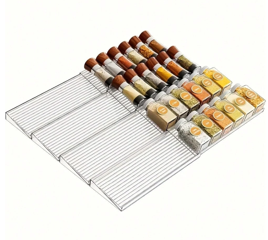This Expandable Acrylic 2-Tier Spice Drawer Organizer is the perfect solution for keeping your kitchen spices neatly arranged and easily accessible. Designed to adjust from 11 to 22 inches, it fits a wide range of drawers and cabinets, offering flexible storage for different kitchen layouts. Crafted from durable, rust-proof acrylic, it ensures long-lasting performance without the need for batteries or complicated installation. The transparent design provides clear visibility of labels and contents, allowing you to quickly find what you need while cooking.
