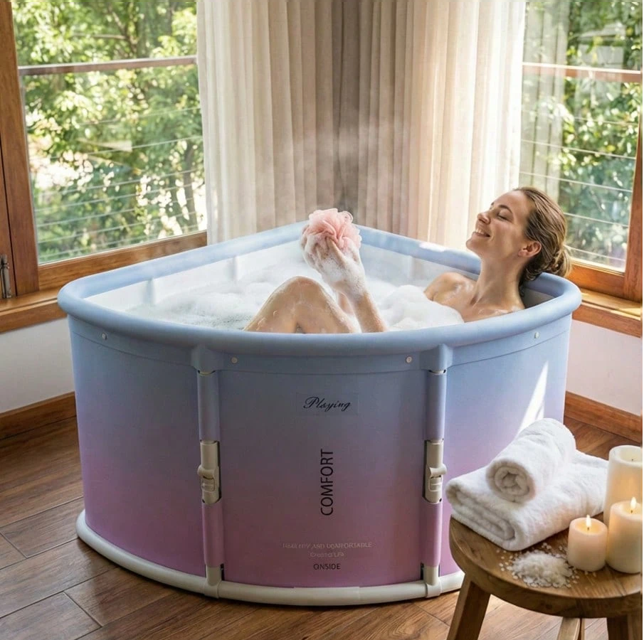 **1pc Foldable Bathtub For Adults** is a **portable, large-capacity spa tub** engineered with a space-saving, collapsible design for easy storage in compact apartments or travel use. Crafted from durable, insulated materials, it retains water temperature for a relaxing, therapeutic soak while supporting personal wellness routines. Its sturdy, quick-drain construction ensures stability and convenience, transforming any space into a private retreat. Ideal for stress relief, hydrotherapy, and self-care at home or on the go.