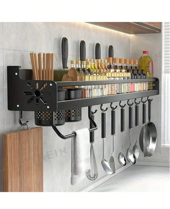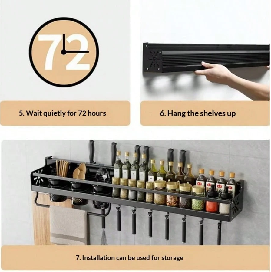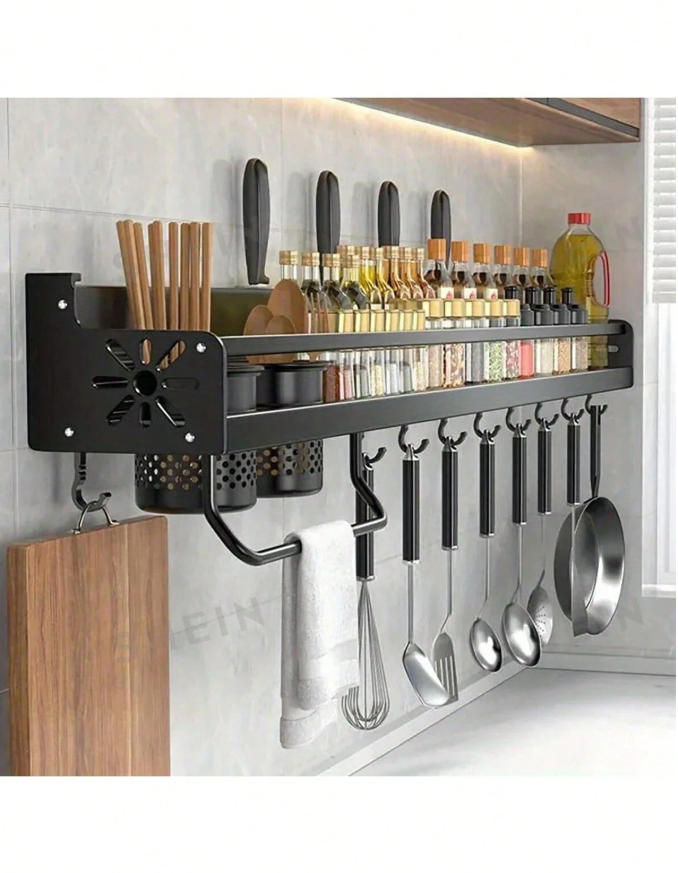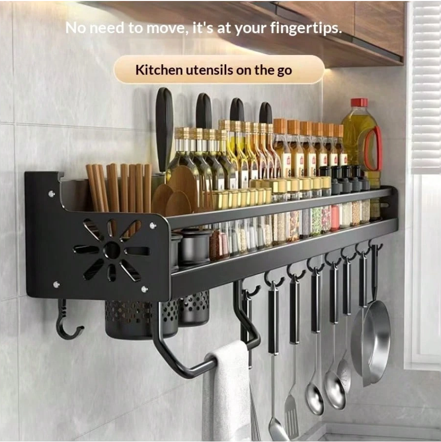 Maximize your kitchen space with this 1PC Heavy Duty Wall Mounted Spice Rack with Hooks, designed to keep your essentials organized and within easy reach. Built from sturdy, durable materials, this multipurpose rack securely holds spices, condiments, utensils, and small cookware while the integrated hooks provide extra space for hanging tools and accessories