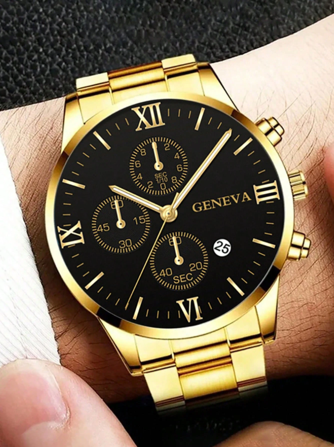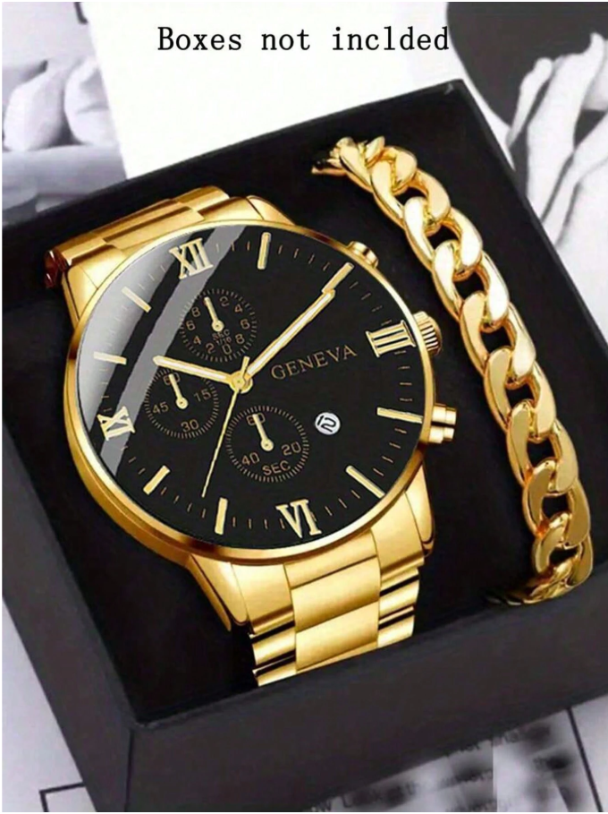 Upgrade your accessory game with this Luxury Men’s Quartz Watch Set, featuring a stylish gold stainless steel wristwatch paired with two matching bracelets for a complete, coordinated look. Designed for both business and casual wear, the watch showcases a refined dial and reliable quartz movement for accurate timekeeping.