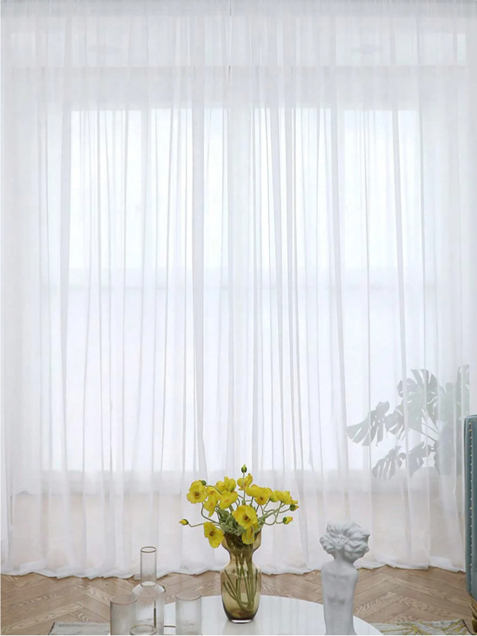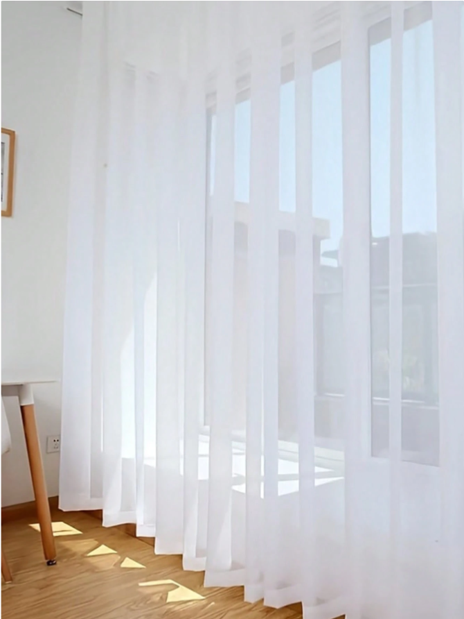 This 1pc Modern White Sheer Voile Curtain adds a soft, elegant touch to any room while maintaining a bright and airy atmosphere. Crafted from lightweight, high-quality fabric, its transparent to semi-transparent finish allows natural light to gently filter through while offering subtle privacy. The classic pole pocket design ensures easy installation and a smooth, graceful drape across windows. Perfect for use in the bedroom, living room, kitchen, and bathroom, this sheer curtain enhances your home with a fresh, modern look and effortless sophistication, making it an ideal choice for stylish household decoration.