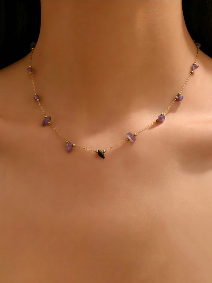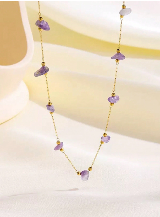 1PC Natural Stone Stainless Steel Necklace features a stunning purple stone pendant paired with a sleek stainless steel chain, creating a fashionable and minimalist choker-style necklace perfect for modern women. Designed to add a subtle pop of color and elegance, this necklace effortlessly enhances both casual and dressy outfits. Its durable stainless steel construction ensures long-lasting shine and comfort for everyday wear, while the natural stone adds a unique, eye-catching touch. Ideal for daily use, parties, dates, and vacations, this versatile accessory makes a beautiful statement piece and a thoughtful gift for any occasion.