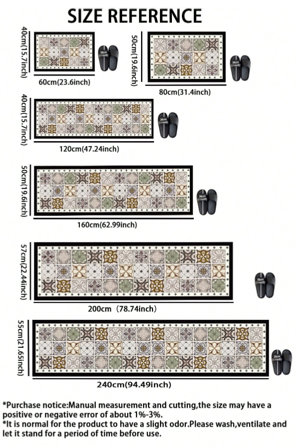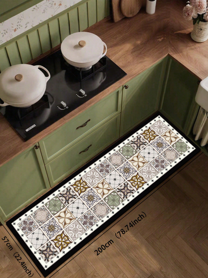 This 1pc Silica Gel Kitchen Floor Mat combines practical comfort with artistic vintage charm, making it a stylish and functional addition to any kitchen. Designed with a unique surface composed of multiple small squares, each section features beautiful vintage-inspired patterns including elegant floral textures, classic geometric lines, decorative scroll motifs, and other timeless elements that create a rich, eye-catching visual effect. Made from premium silica gel material, the mat offers excellent durability, slip resistance, and cushioning for added comfort during long periods of standing. Easy to clean and highly resilient, it protects your flooring from spills and wear while enhancing your kitchen’s décor with a warm, classic aesthetic.