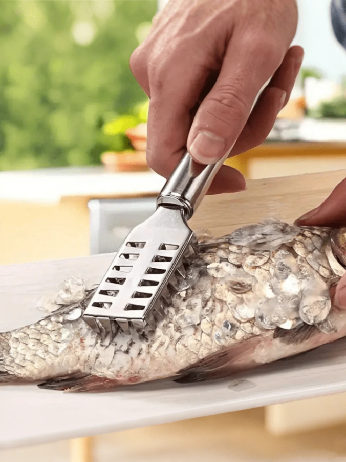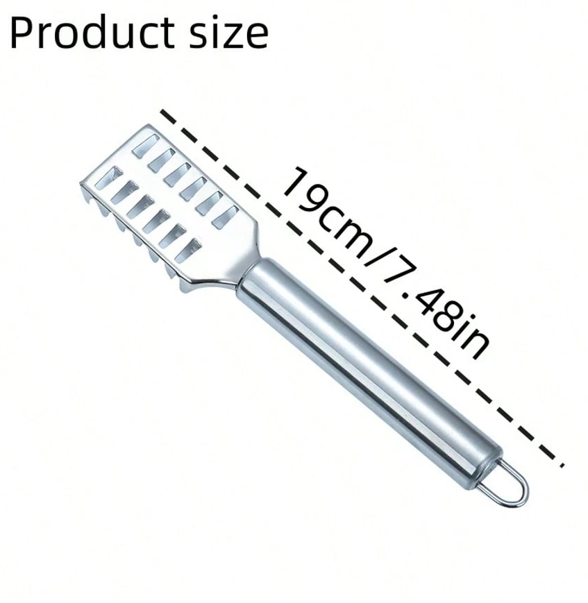 Make fish cleaning quick and mess-free with this 1PC Stainless Steel Fish Scale Remover, an efficient and multipurpose kitchen tool designed for fast and easy scale removal. Crafted from high-quality stainless steel, this durable and rust-resistant fish scaler provides a firm grip and sharp scraping edges that effortlessly remove scales and debris without damaging the fish. Its ergonomic design ensures comfortable handling and better control, helping you save time and reduce mess during food preparation.