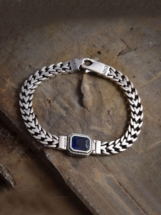 Elevate his style with this vintage punk-inspired handmade bracelet, featuring a striking heart chain accented with brilliant blue zirconia stones. The bold, edgy design combines rugged chain links with elegant gemstone details, creating a unique accessory that stands out. Crafted with durable materials, this bracelet offers lasting quality while the secure clasp ensures comfortable everyday wear. Perfect for the modern man who appreciates distinctive, artisan-crafted jewelry with a touch of rebellious elegance.