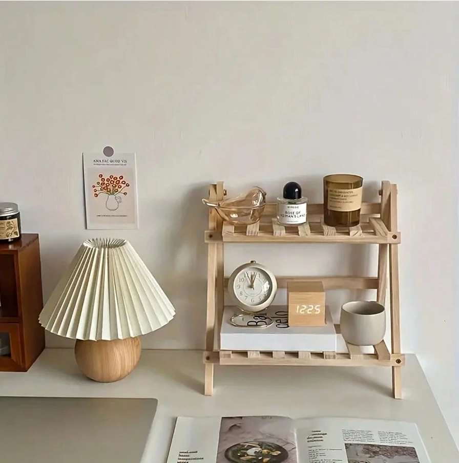 Organize in style with this vintage wooden desktop storage rack, featuring a dual-layer design that maximizes space while adding rustic charm to any room. Its multifunctional foldable design allows for easy storage when not in use, making it perfect for displaying books, plants, decor, or office essentials. Crafted from quality wood with a timeless finish, this shelf complements farmhouse, bohemian, or modern interiors effortlessly. Versatile and space-saving, it’s the ideal solution for keeping your home organized and beautiful.
