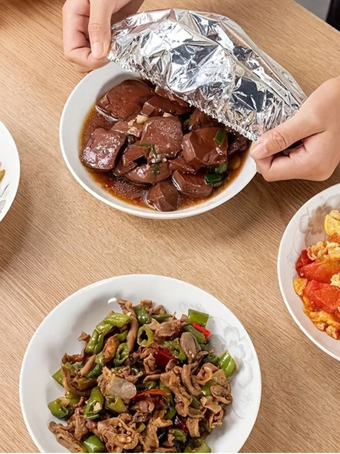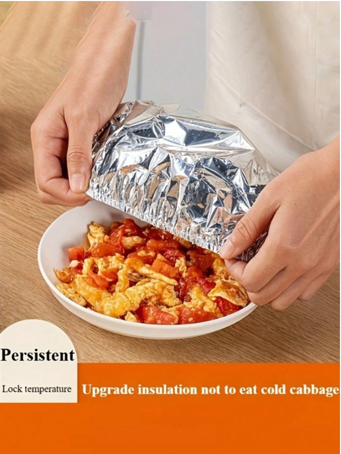 Keep your food fresh, warm, and protected with these 20/10/5pcs Reusable Aluminum Foil Covers, designed for convenient food storage and everyday kitchen use. Made from durable, food-safe aluminum foil material, these flexible covers easily stretch to fit plates, bowls, and containers of various sizes, creating a tight seal that helps lock in freshness, retain heat, and prevent spills or contamination.