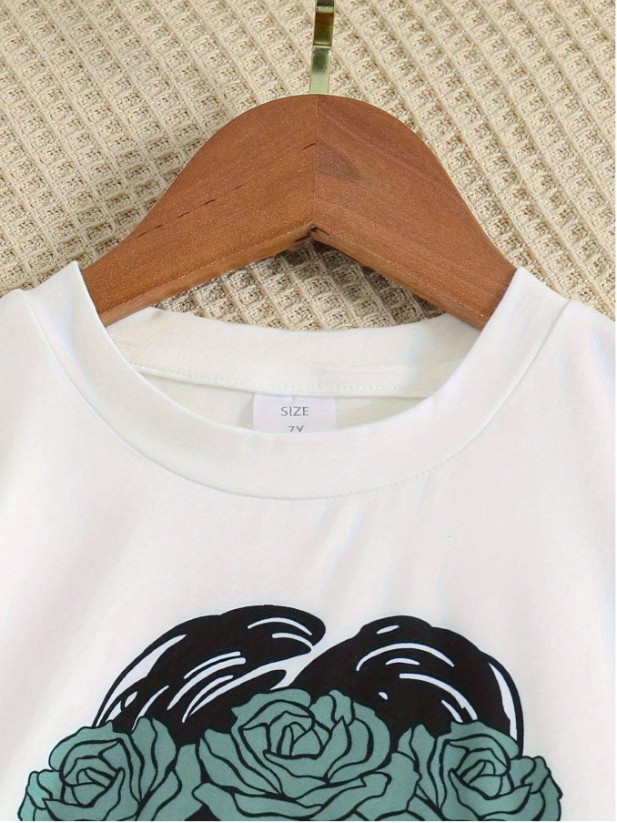 This 2PCS/Set Girls Summer Thin Outfit includes a cute eyeglasses print short sleeve round neck top paired with solid color straight leg pants for a stylish and casual look. Made with breathable lightweight fabric, it keeps tween girls comfortable and cool during warm weather. Perfect for daily wear, school, outings, travel, and summer activities, this fashionable set is an easy and versatile choice for children’s summer clothing.