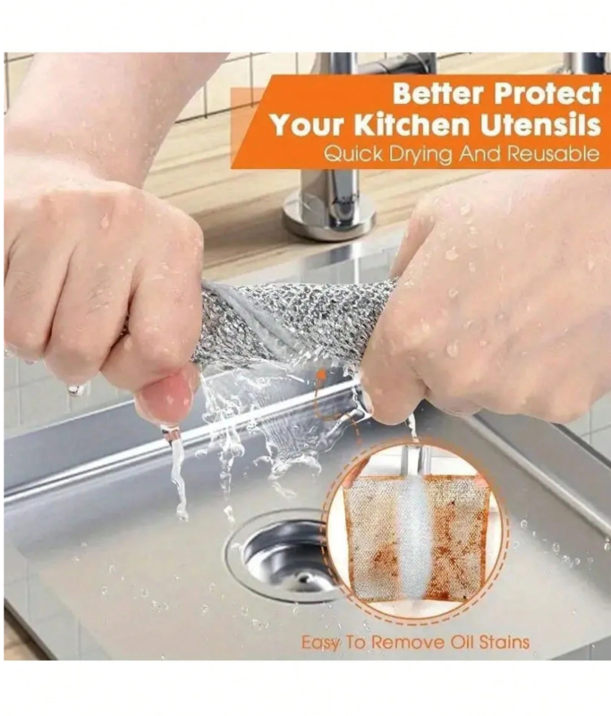 Tackle tough cleaning jobs with ease using this 30PCS Microfiber Steel Mesh Sponge Pad set, designed for powerful yet gentle scrubbing on a variety of kitchen surfaces. Featuring a double-sided design, each pad combines durable steel mesh for removing stubborn grease, stains, and burnt residue with soft microfiber for smooth, scratch-free cleaning.