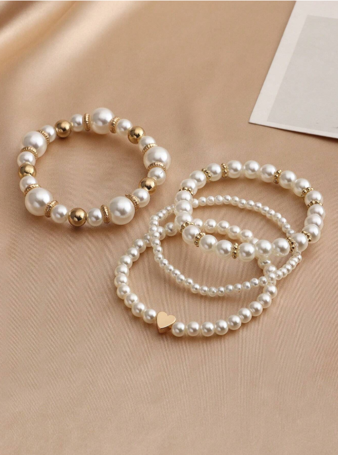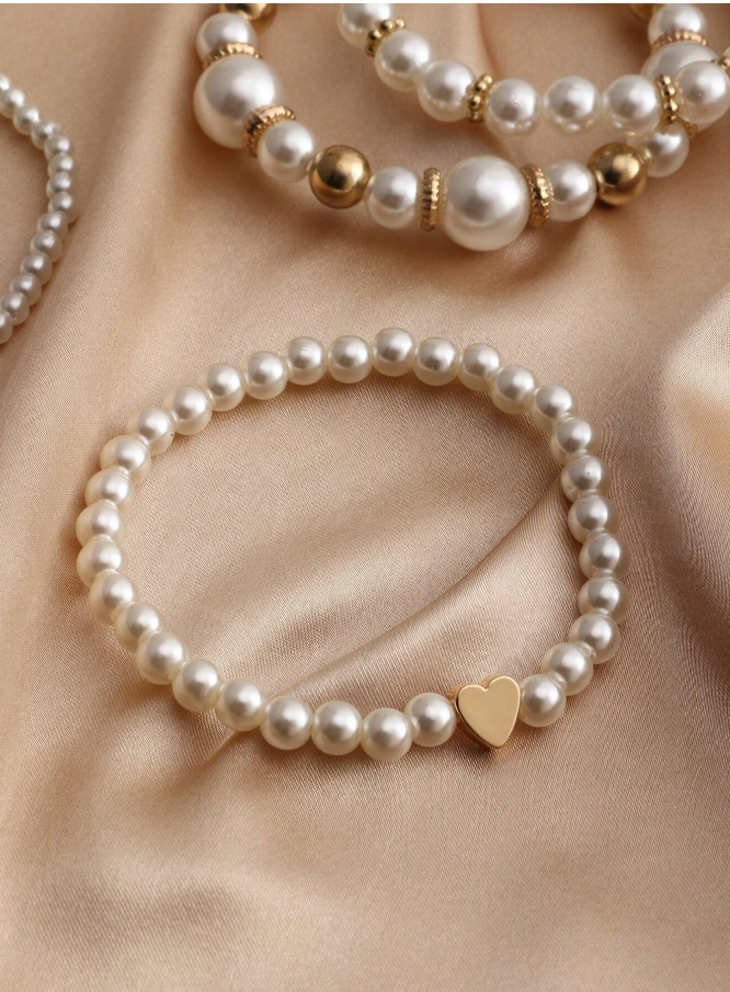 Celebrate sweetness and style with this 4-piece girls’ pearl beaded bracelet set, featuring delicate heart charms that add a touch of romantic charm. Each bracelet showcases lustrous pearls that catch the light beautifully, creating a timeless look perfect for everyday wear or special occasions. The stretch design ensures a comfortable, secure fit for growing wrists, making them easy to put on and take off independently. This versatile set allows for endless mixing and matching, making it the ideal gift for young trendsetters who love adorable, stackable accessories.