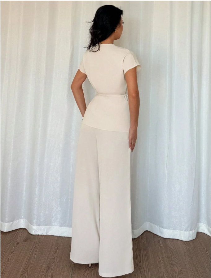 The Elenzga women’s elegant 2-piece set features a beautifully designed wrap batwing sleeve blouse paired with wide-leg loose pants, creating a graceful and modern silhouette. Crafted from woven fabric in a soft apricot color, this outfit delivers both comfort and sophistication. The flowing fit flatters the figure while offering effortless movement, making it ideal for dates, workplace settings, daily commutes, and casual office wear. With its refined design and versatile styling, this set provides a polished look that transitions seamlessly from professional to social occasions.