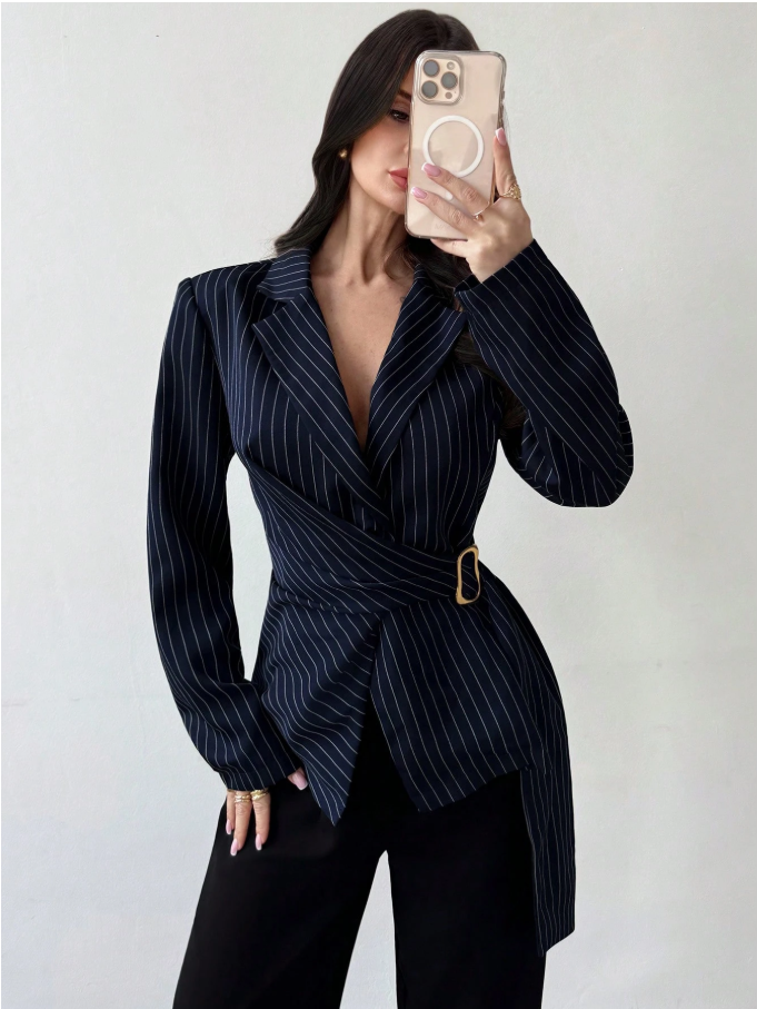 The Firerie women’s casual and elegant striped blazer is a timeless wardrobe essential that blends classic sophistication with modern versatility. Designed with a refined retro aesthetic and subtle “old money” elegance, this blazer delivers a polished look ideal for work, commuting, and everyday professional wear. Perfect for the back-to-school season, teachers, office environments, and business casual styling, it enhances any outfit with intellectual charm and graceful confidence. Crafted for autumn and winter, this elegant piece transitions effortlessly between seasons, offering comfort, structure, and enduring style for women who value both fashion and function.