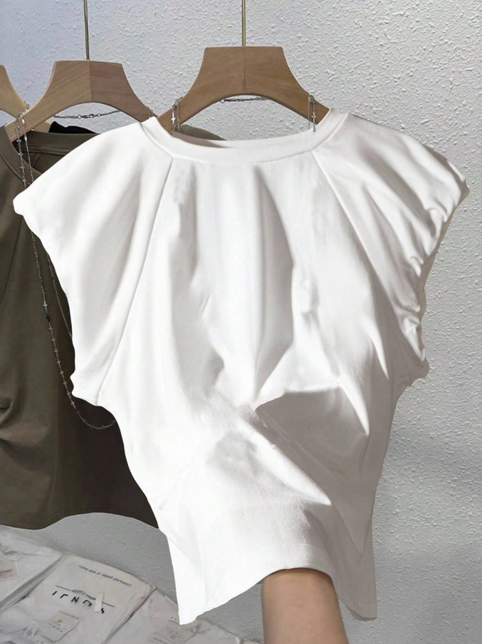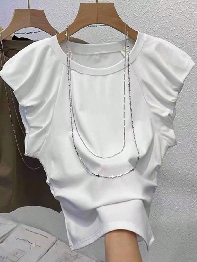 Elevate your summer style with this Franclia short sleeve tee, featuring delicate ruffle accents and playful lantern sleeves for a touch of feminine charm. The soft, breathable fabric keeps you cool while the ruched detailing creates a flattering, curve-hugging fit. Its versatile solid color design pairs effortlessly with jeans, skirts, or shorts for any casual occasion. This essential top combines everyday comfort with romantic, eye-catching details.