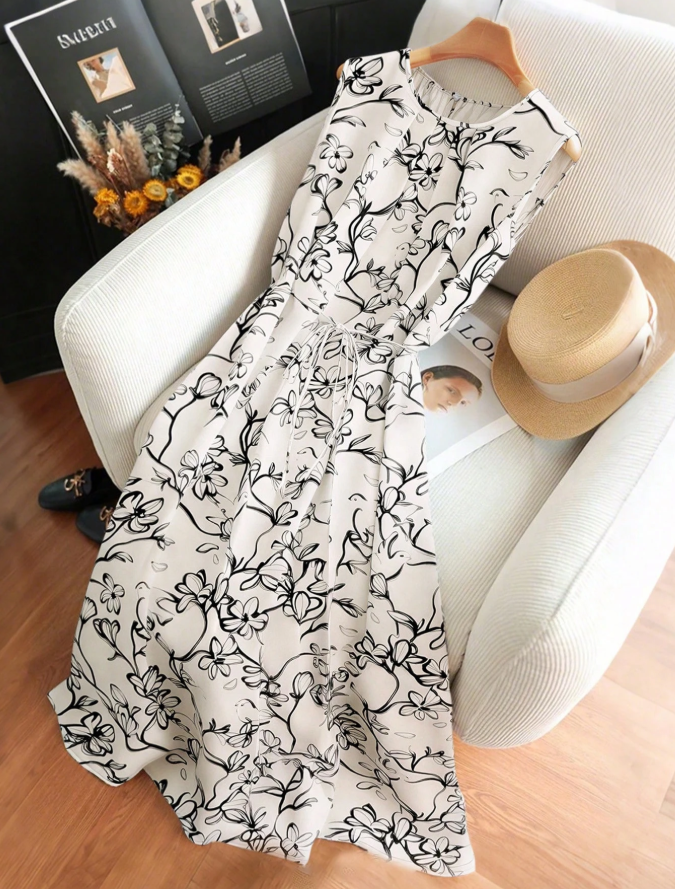 The GlowEve Women’s Floral Ink Print Waist Cinched Sleeveless Dress captures the artistic essence of spring and summer with its beautiful floral ink pattern that resembles watercolor painting on fabric. The waist-cinched design creates a flattering, defined silhouette while the sleeveless cut keeps you cool and comfortable during warm-weather outings, from garden parties to casual brunches.