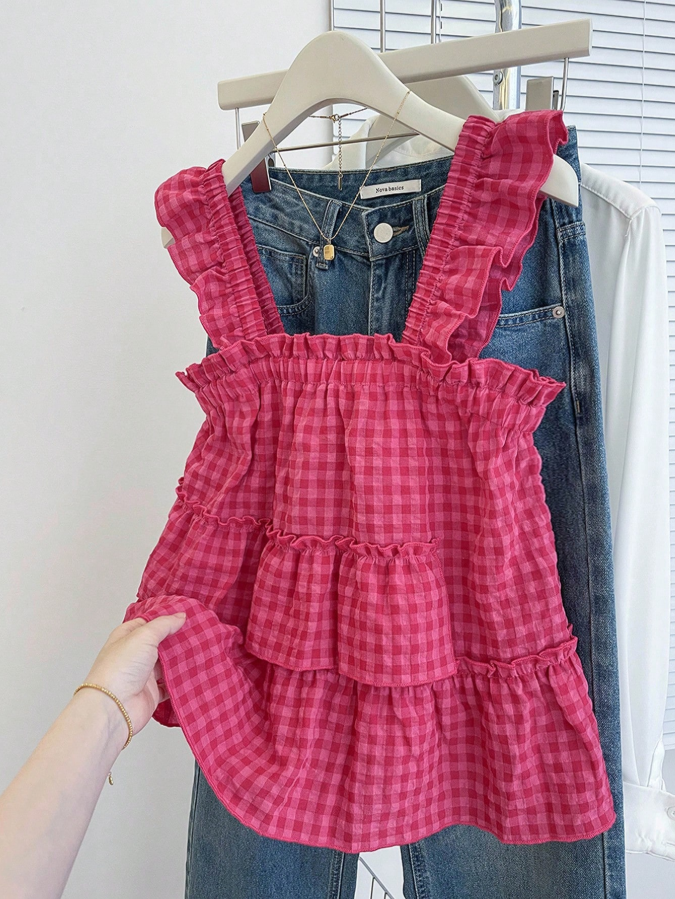 Stay cool and stylish this summer with this INAWLY casual sleeveless top, featuring a classic plaid pattern that adds timeless charm to warm-weather looks. The lightweight, breathable fabric keeps you comfortable while the sleeveless silhouette offers effortless versatility for any casual occasion. Pair it with jeans, shorts, or skirts for an easy, put-together outfit all season long. This essential piece combines laid-back comfort with preppy plaid appeal.