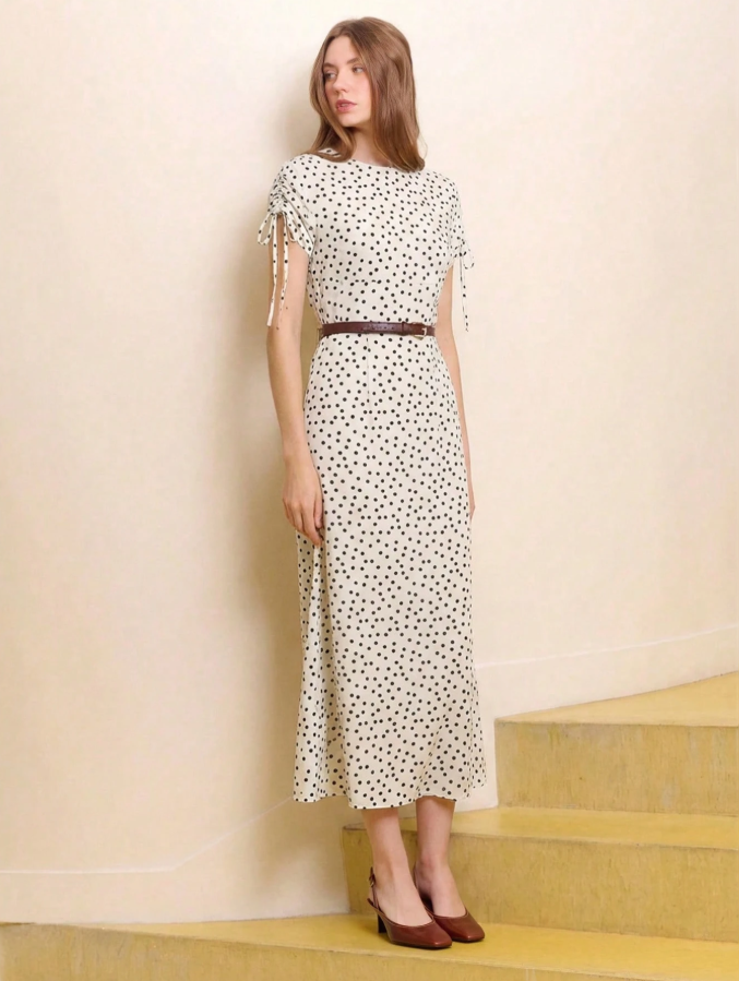 The lacRébo Elegant Dark Green Polka Dot Maxi Dress is a stunning satin creation that effortlessly blends vintage charm with modern sophistication, perfect for spring outings, business casual settings, or elegant evening events . Its rich dark green hue provides a sophisticated backdrop for playful polka dots, while the flowing maxi silhouette and luxe satin fabric create a graceful, feminine silhouette that transitions seamlessly from office to dinner dates .